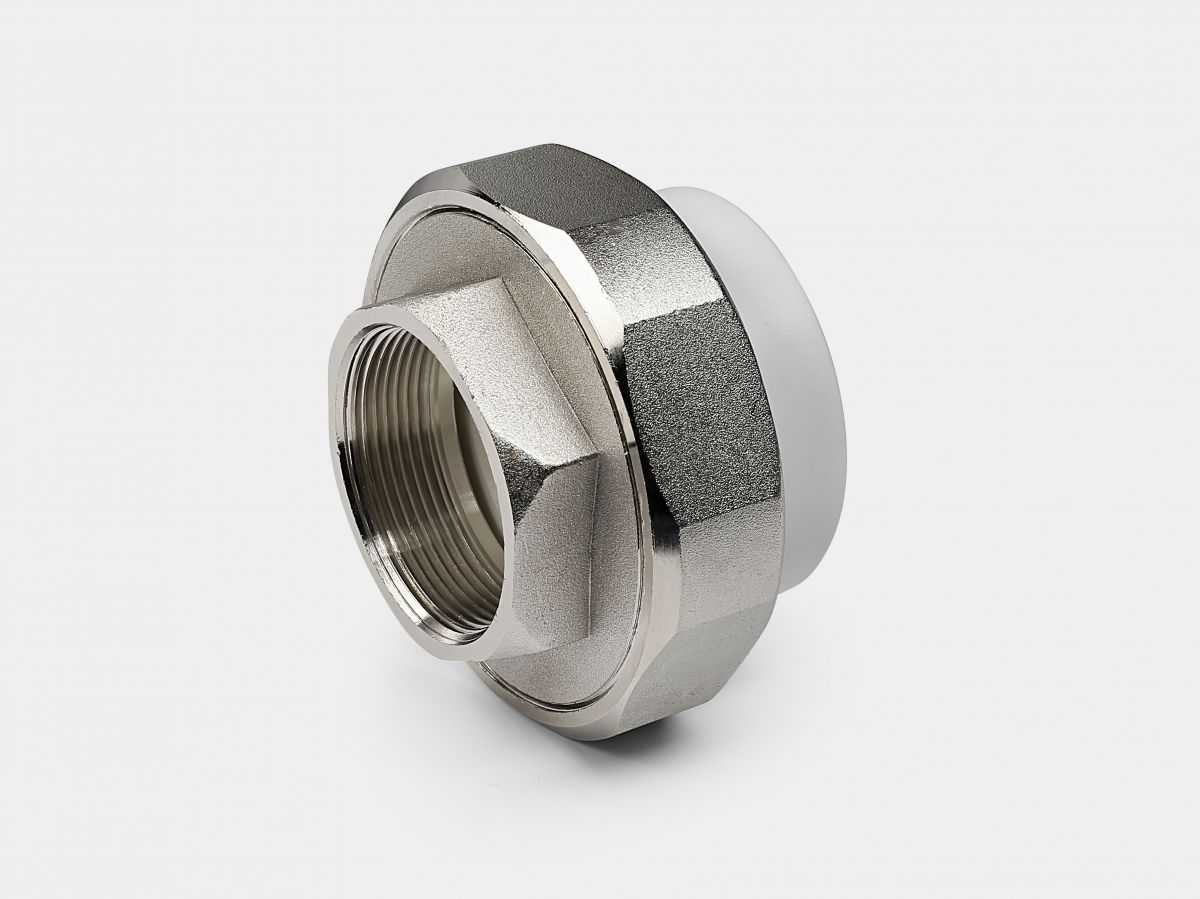 Американка полипропиленовая муфтовая ВР D63-2 КОНТУР (усиленная) предназначена для разъемного соединения между трубой и резьбовым фитингом. Подходит для систем отопления и водоснабжения. Монтаж: вход - ПП наружный, выход - Платунь, внутренняя резьба.