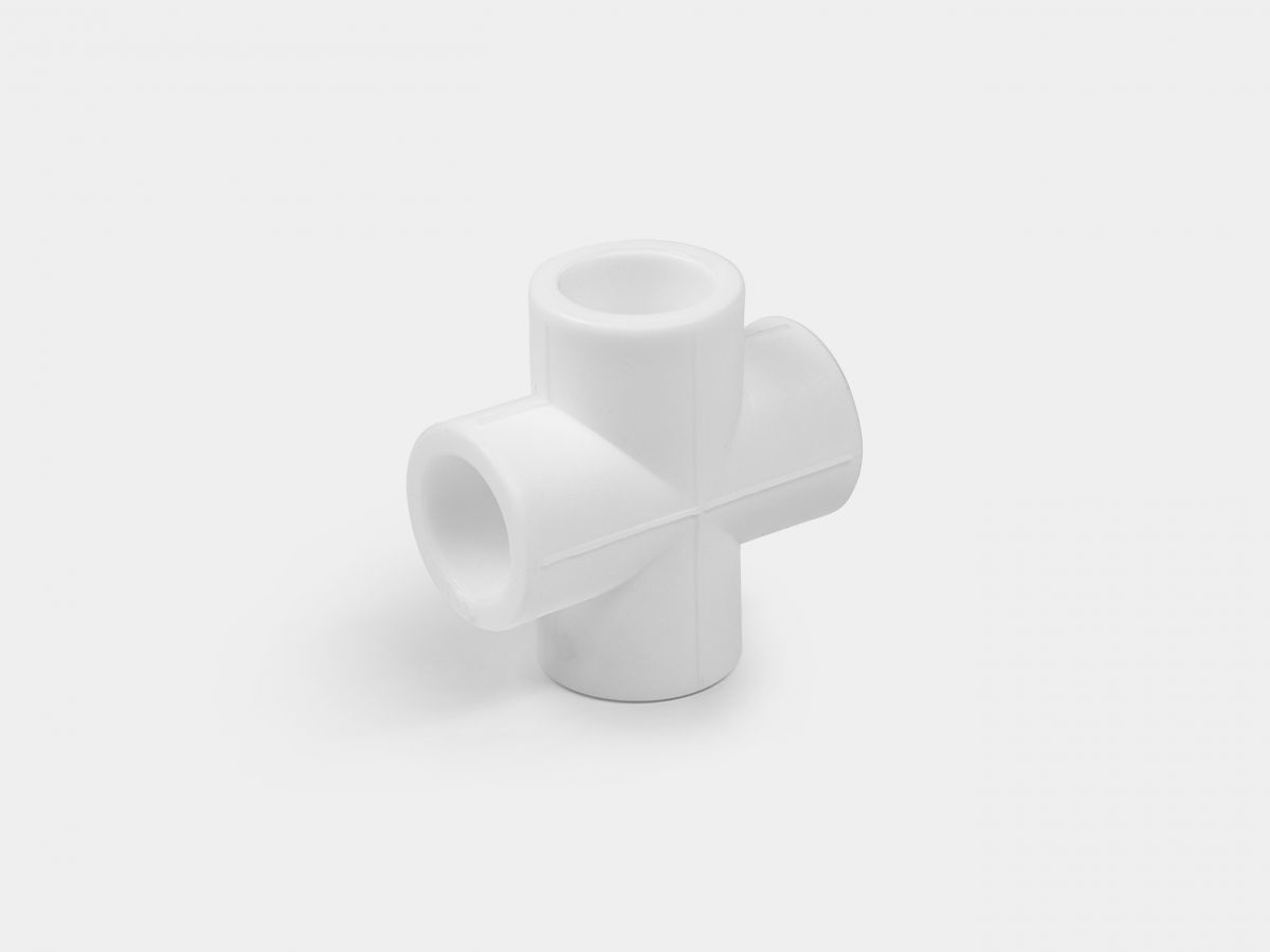 Крестовина полипропиленовая D20 КОНТУР предназначена для перехода с вертикальной разводки на горизонтальную. Монтаж: вход - ПП наружный, выходы - ПП наружные.