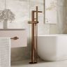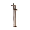 Напольный смеситель для ванны Характеристики: - Керамический картридж 35мм, Sedal (Испания); - Встроенный пластиковый аэратор Neoperl HONEYCOMB (Германия) для равномерного распределения струи; - Автоматический кнопочный переключатель на душ; - PVD-покрытие "розовое золото". Входит в комплект: - Лейка 1-функциональная с системой защиты от известковых отложений; - Шланг металлический, 1500 мм, подключение к лейке; - Набор для монтажа; - Круглый уровень (нивелир).