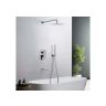 1. Смеситель из латуни с установочной коробкой на 3 потребителя (внешняя и скрытая часть) 2. Душевой гарнитур: лейка, шланг, шланговое подсоединение с держателем 3. Верхний душ 4. Излив 5. Декоративные накладки на стену из нержавеющей стали 3 мм