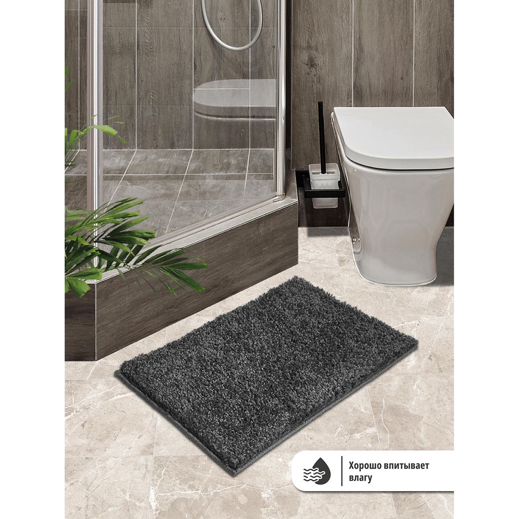 Антискользящее покрытие:Да;Высота ворса, см:3;Категория:Карнизы, коврики, шторы и сиденья для ванной;Материал:Полипропилен, латексное покрытие;Назначение:Для ванной;Подкатегория:Коврики;Размер, см:40x60;Тип изделия:Коврик для ванной комнаты;Форма:Прямоугольная;Цвет:Графит