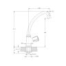 Кран для раковины RUSH арт. PI7950-24 с металлической ручкой из коллекции Pioneer изготовлен из высококачественной латуни и имеет вентильное управление. В кран установлена кран-букса (RSH502) с керамическими пластинами. Высота 249мм. Излив поворотный (360гр), 135 мм. Высота излива до аэратора 190 мм. Аэратор изготовлен из пластика с нержавеющим корпусом, угол наклона - 12 гр. В комплекте универсальная присоединительная (шпилька-2шт), гибкая подводка с латунными гайками 35см - 2шт, фум-лента, индивидуальный пакет, паспорт, гарантийный талон.