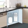 Система очистки для получения воды наивысшего качества. Несколько ступеней очистки, включая обратноосмотическую мембрану, позволяют удалить до 99% всех видов загрязнений, включая бактерии и вирусы. Очищенная вода накапливается в отдельном баке и подается через кран, отдельно устанавливаемый на кухонной мойке.