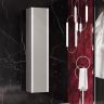 Рельефные фасады тумбы с технологией открывания push-to-open покрыты влагостойкой эмалью серого цвета.