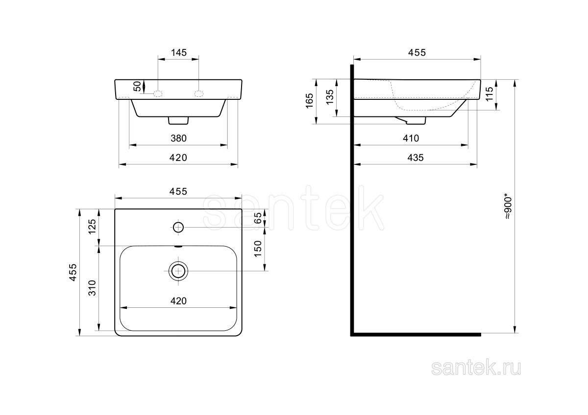 Читать все статьиРаковина Santek Адриана 45 отверстие под смеситель 1WH501630