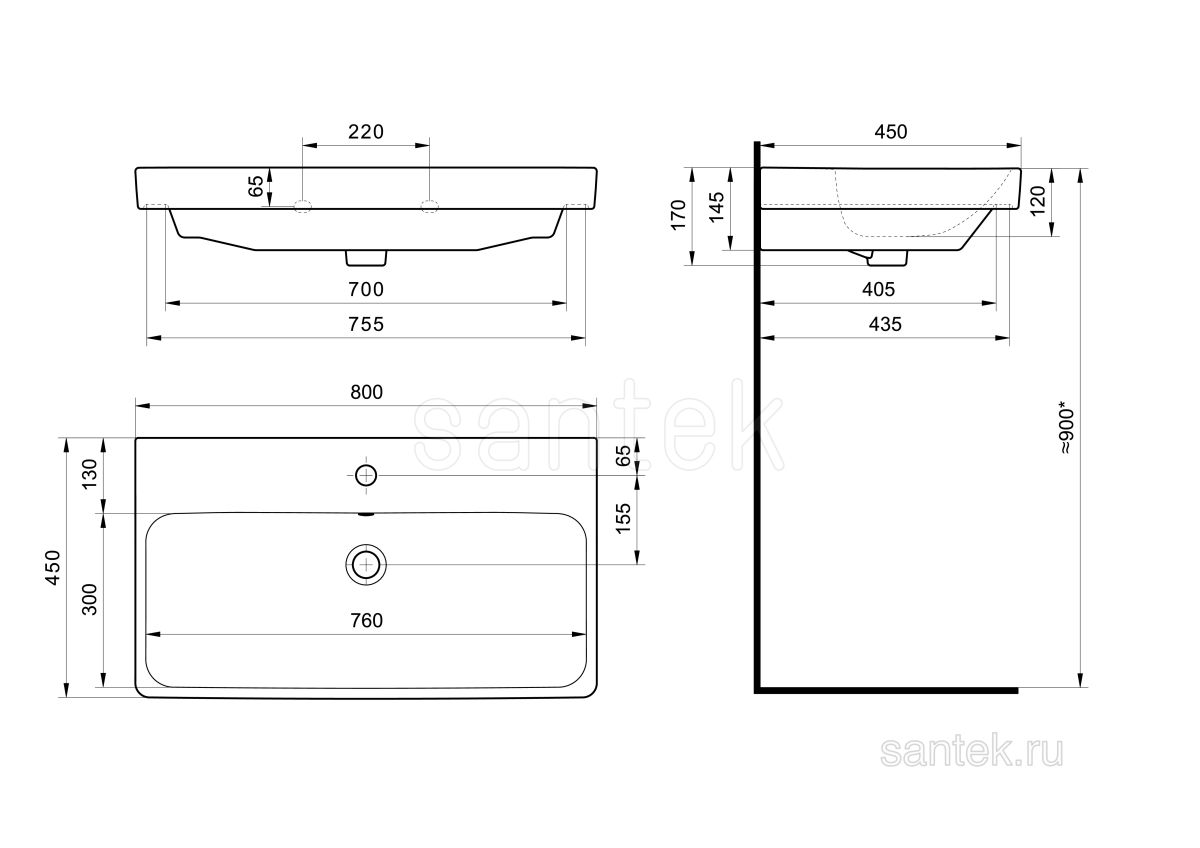 Читать все статьиРаковина Santek Адриана 80 отверстие под смеситель 1WH501772