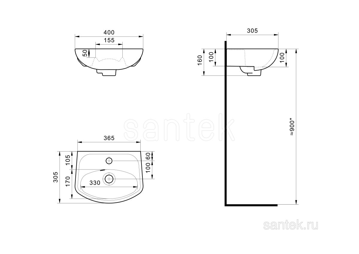 Читать все статьиРаковина Santek Анимо 40 отверстие под смеситель 1WH110490