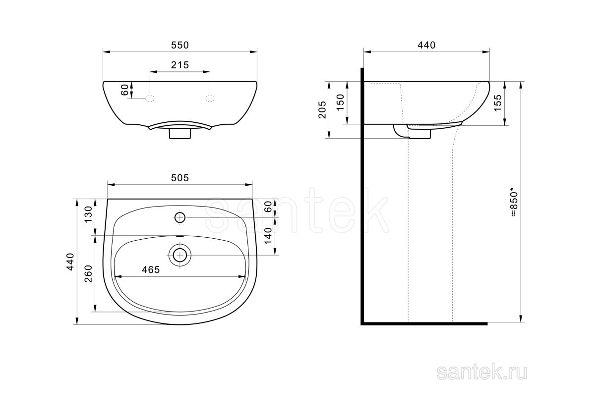Читать все статьиРаковина Santek Анимо 55 отверстие под смеситель 1WH110502