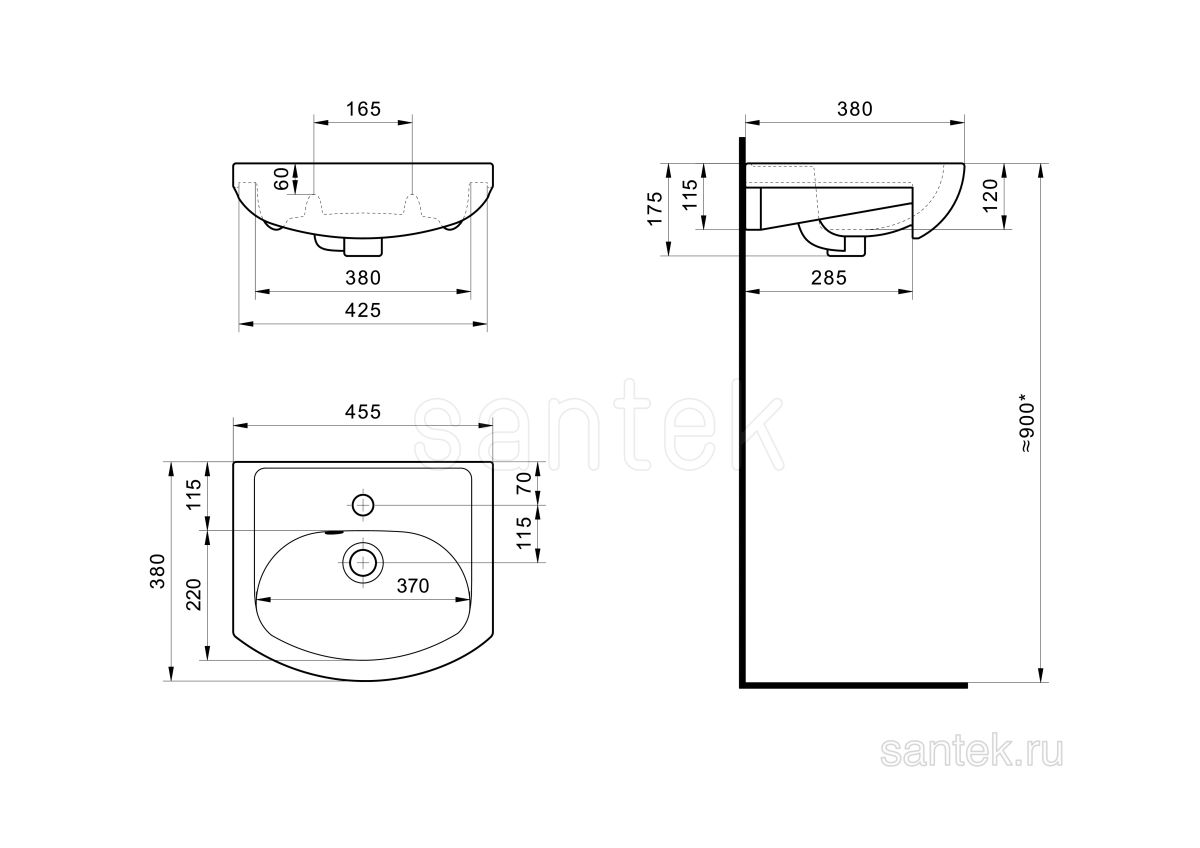Раковина Santek Азов 45 отверстие под смеситель 1WH112449