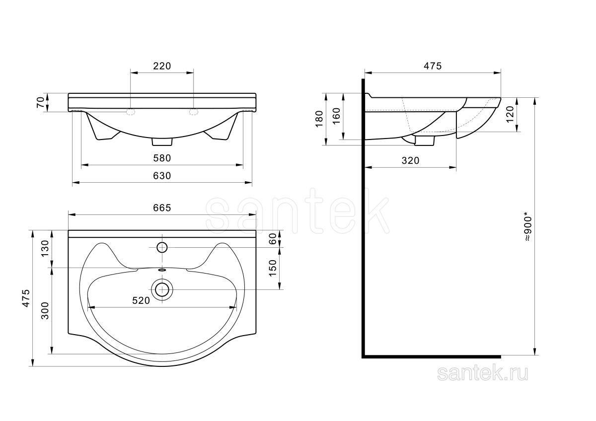 Раковина Santek Байкал 65 отверстие под смеситель 1WH109651