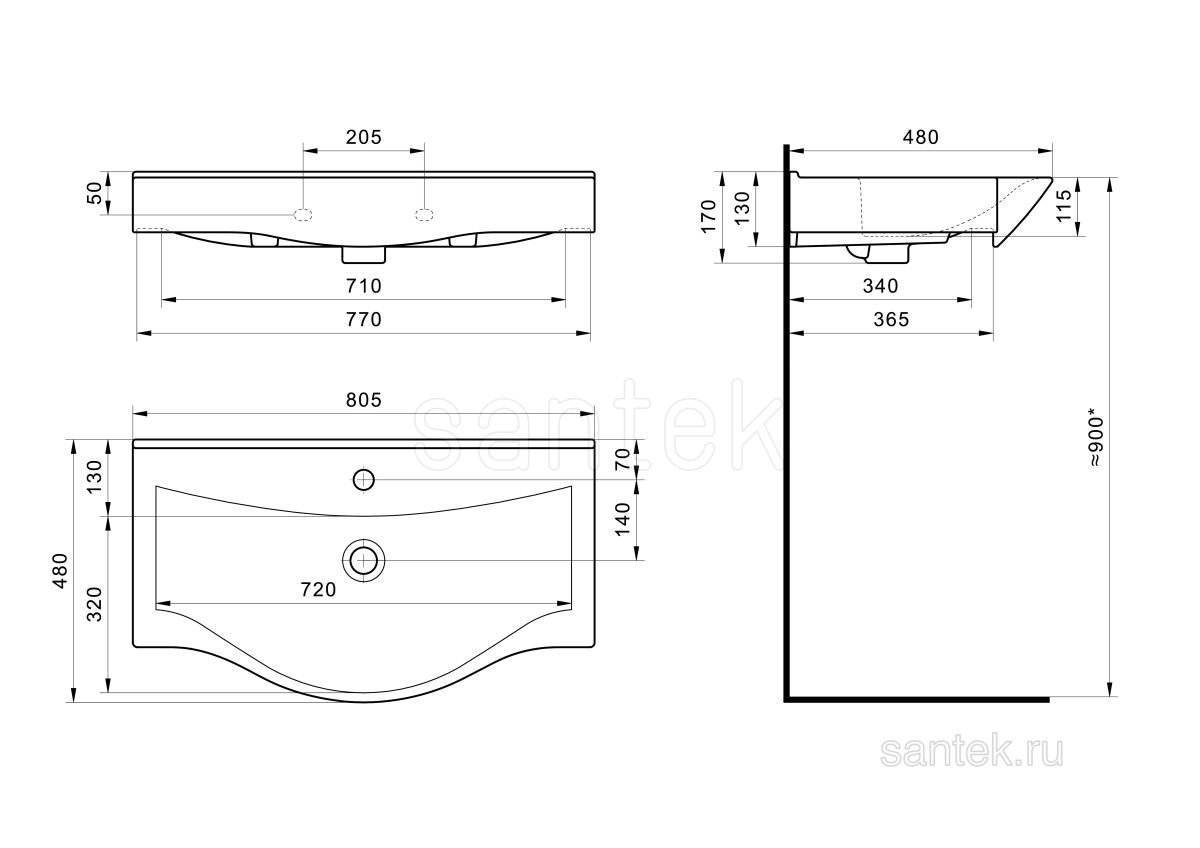Читать все статьиРаковина Santek Беверли 80 отверстие под смеситель 1WH302422