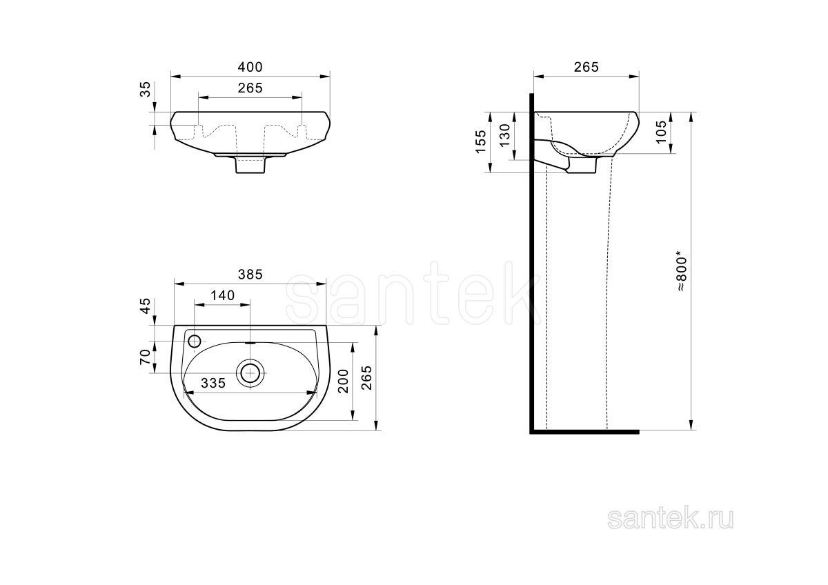 Читать все статьиРаковина Santek Бриз 40 отверстие под смеситель слева 1WH110442