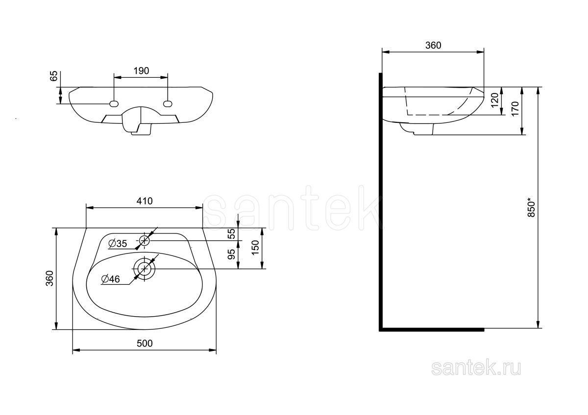 Читать все статьиРаковина Santek Бриз 50 отверстие под смеситель 1WH110451