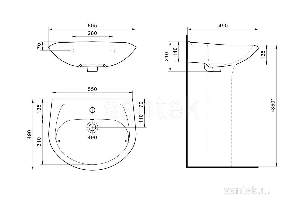Читать все статьиРаковина Santek Бриз 60 отверстие под смеситель 1WH110466
