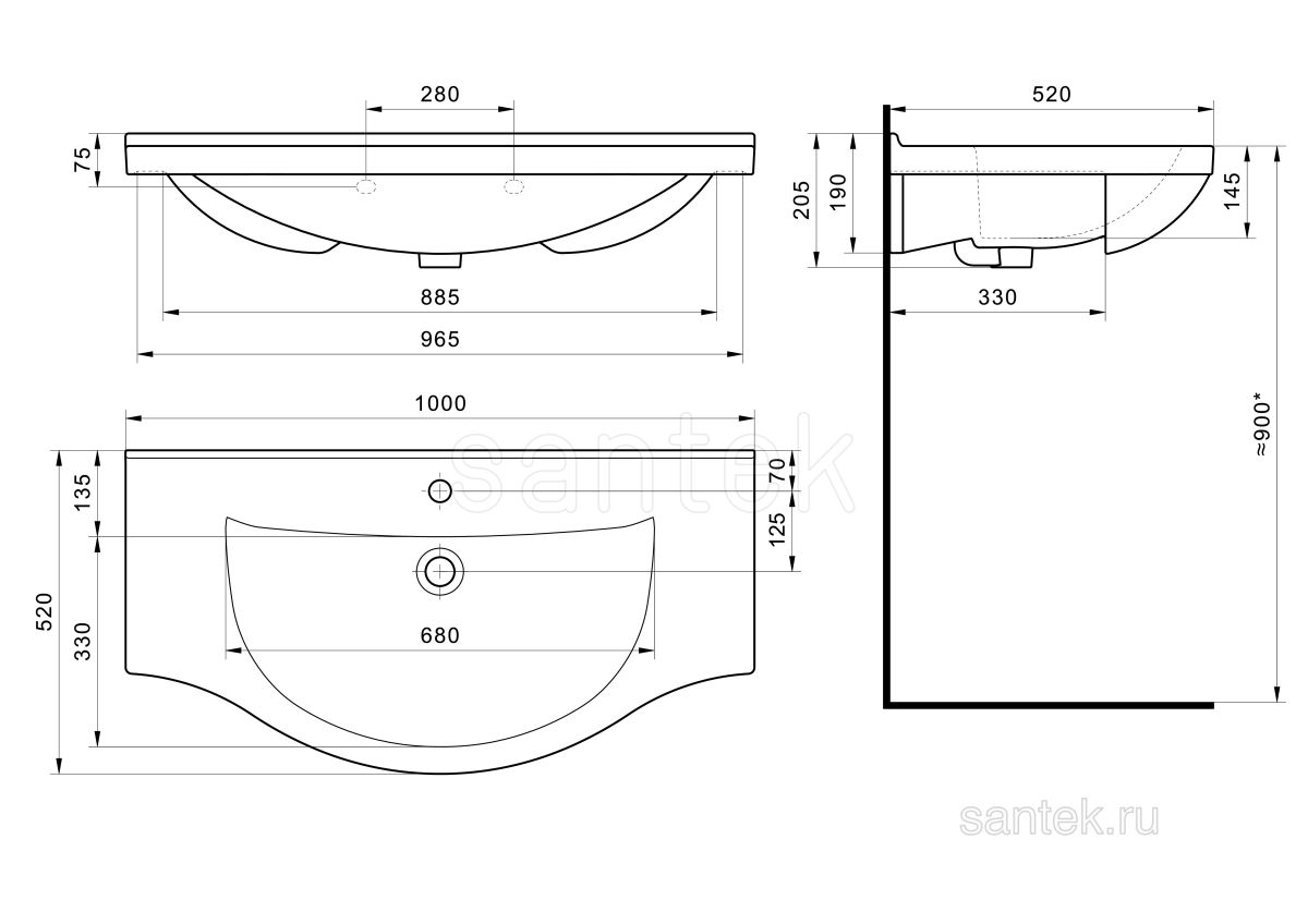Раковина Santek Эльбрус 100 отверстие под смеситель 1WH110255