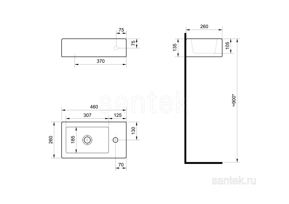 Раковина Santek Эрис 46 отверстие под смеситель справа 1WH301972