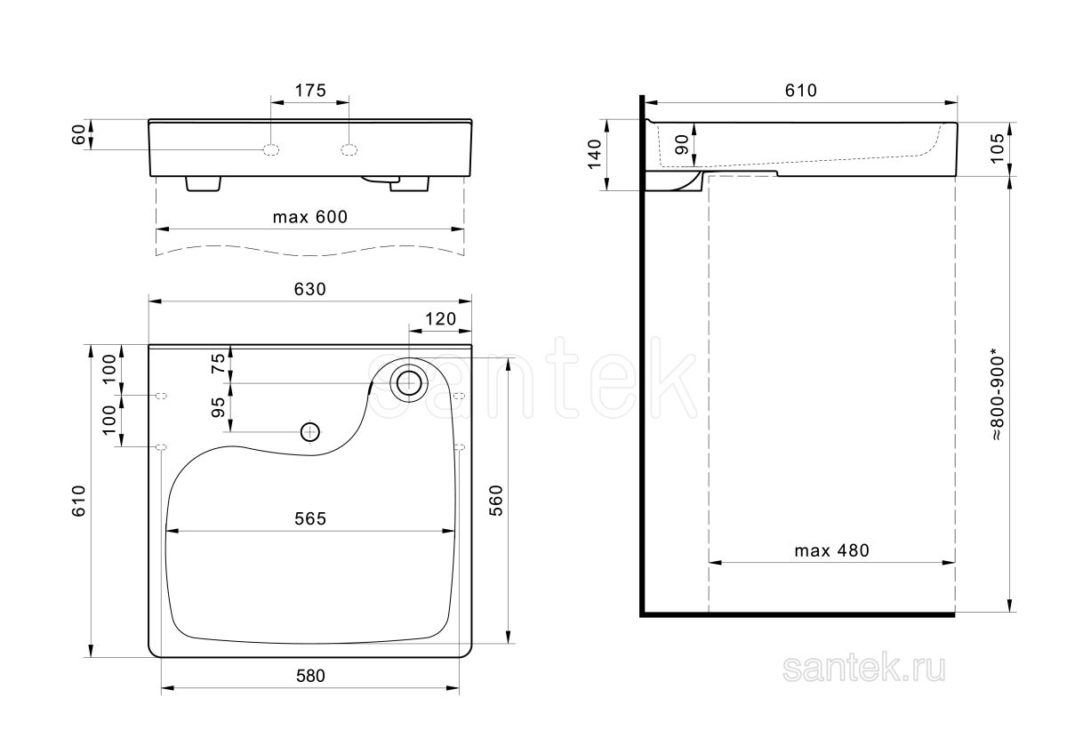 Читать все статьиРаковина Santek Клио 60х61 с кронштейнами и сифоном 1WH501785