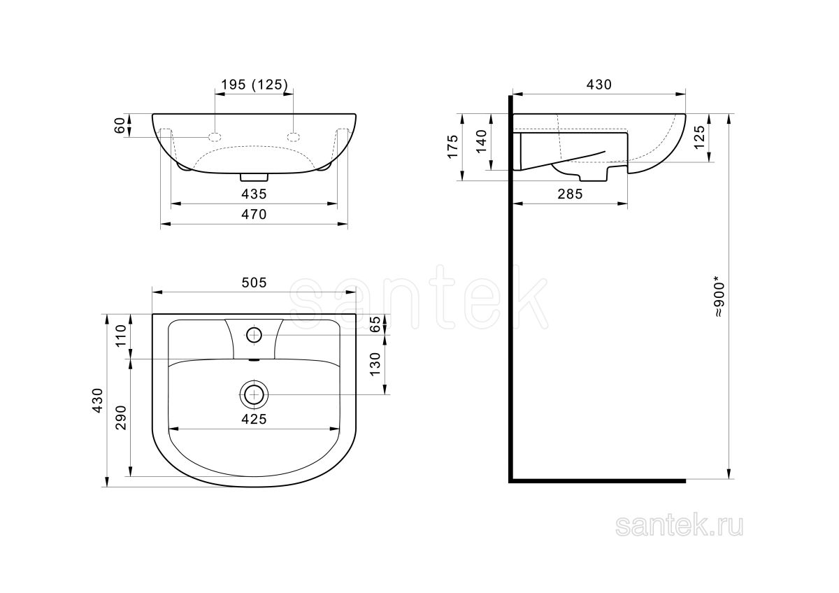 Раковина Santek Ладога 50 отверстие под смеситель 1WH110256