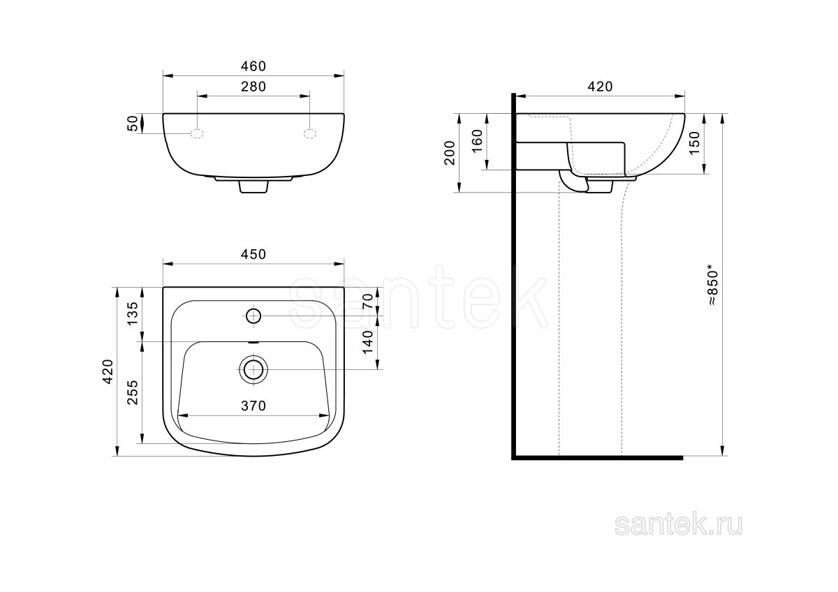 Читать все статьиРаковина Santek Лонги 450х420 отверстие под смеситель 1WH501753