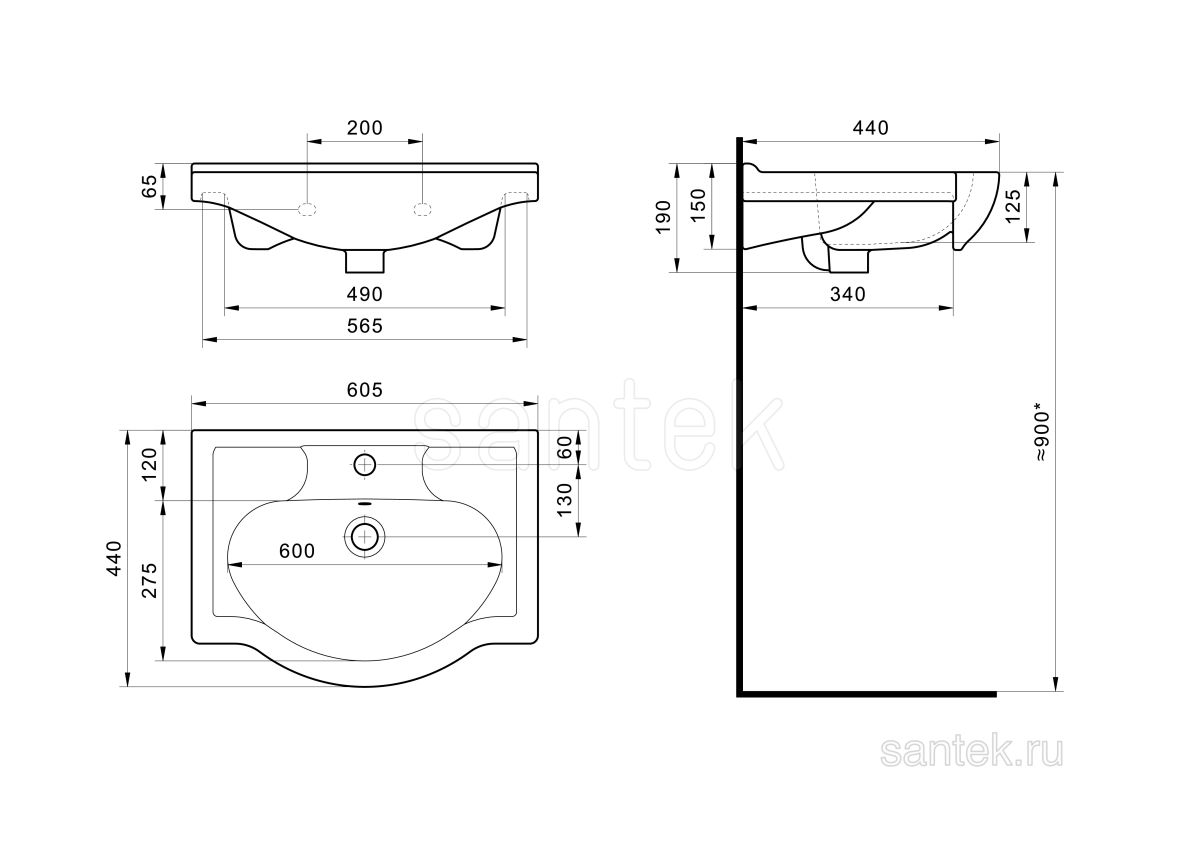 Раковина Santek Селигер 60 отверстие под смеситель 1WH110268