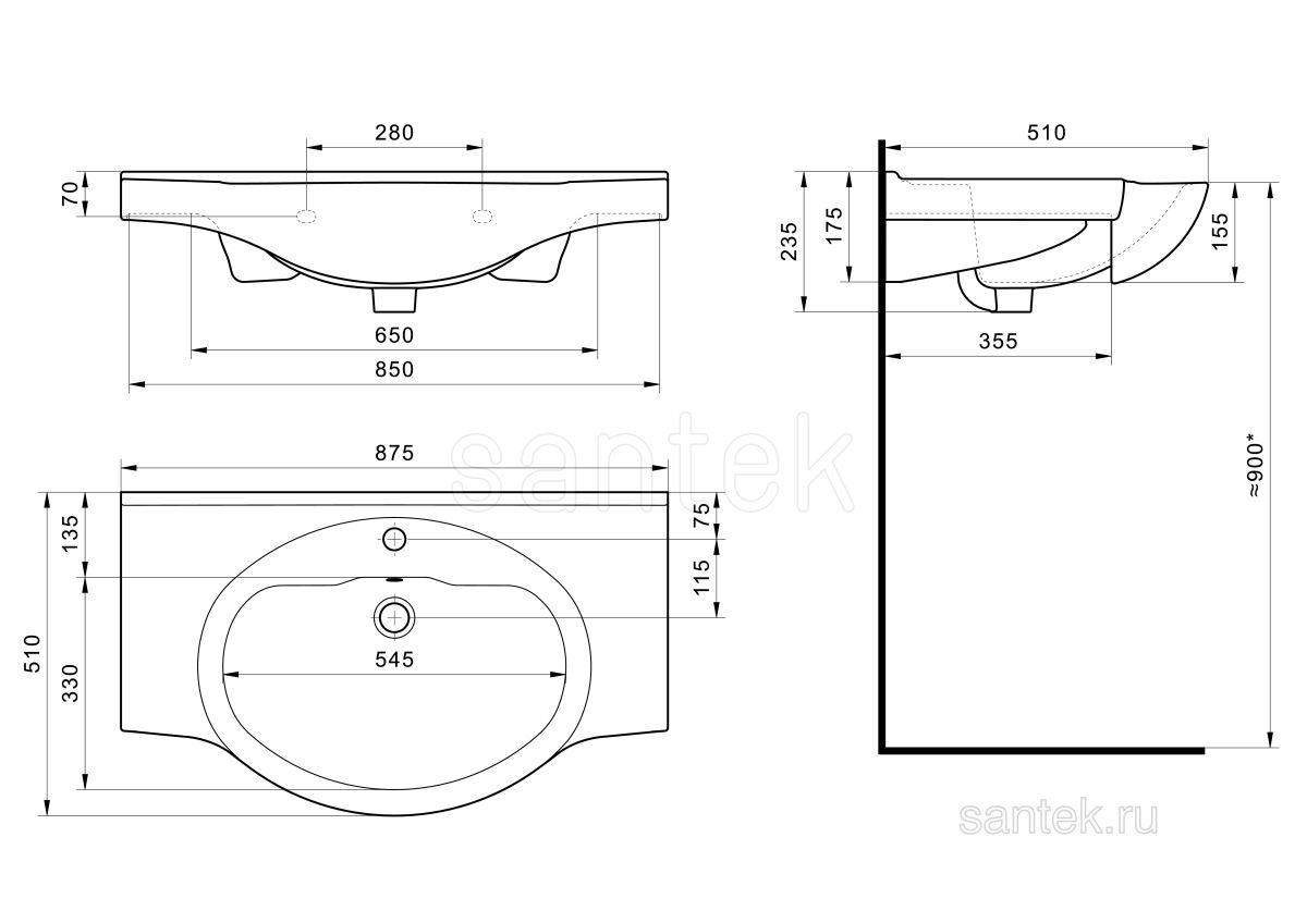 Раковина Santek Сенеж 87 отверстие под смеситель 1WH110265