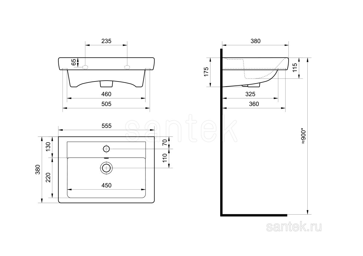 Раковина Santek Тигода 55 отверстие под смеситель 1WH302127 мини