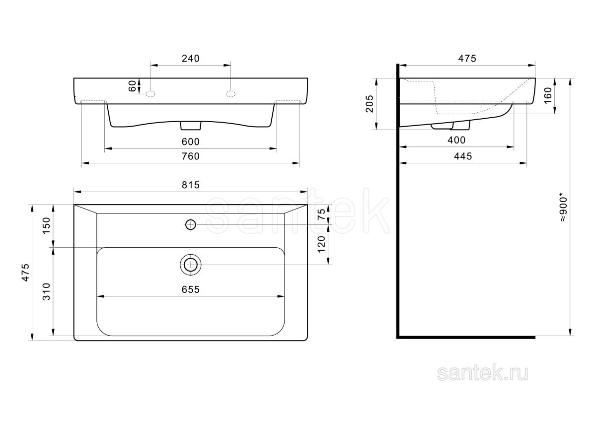 Раковина Santek Тигода 80 отверстие под смеситель 1WH302084