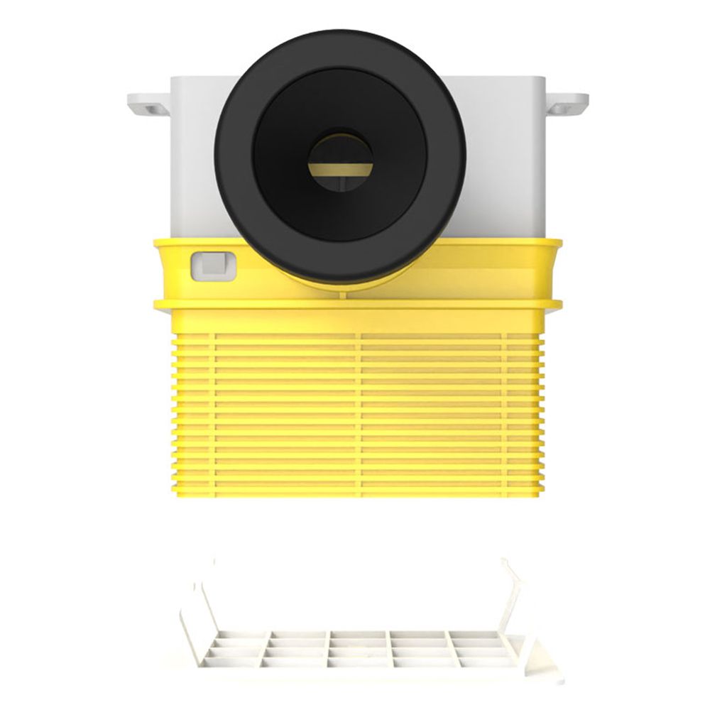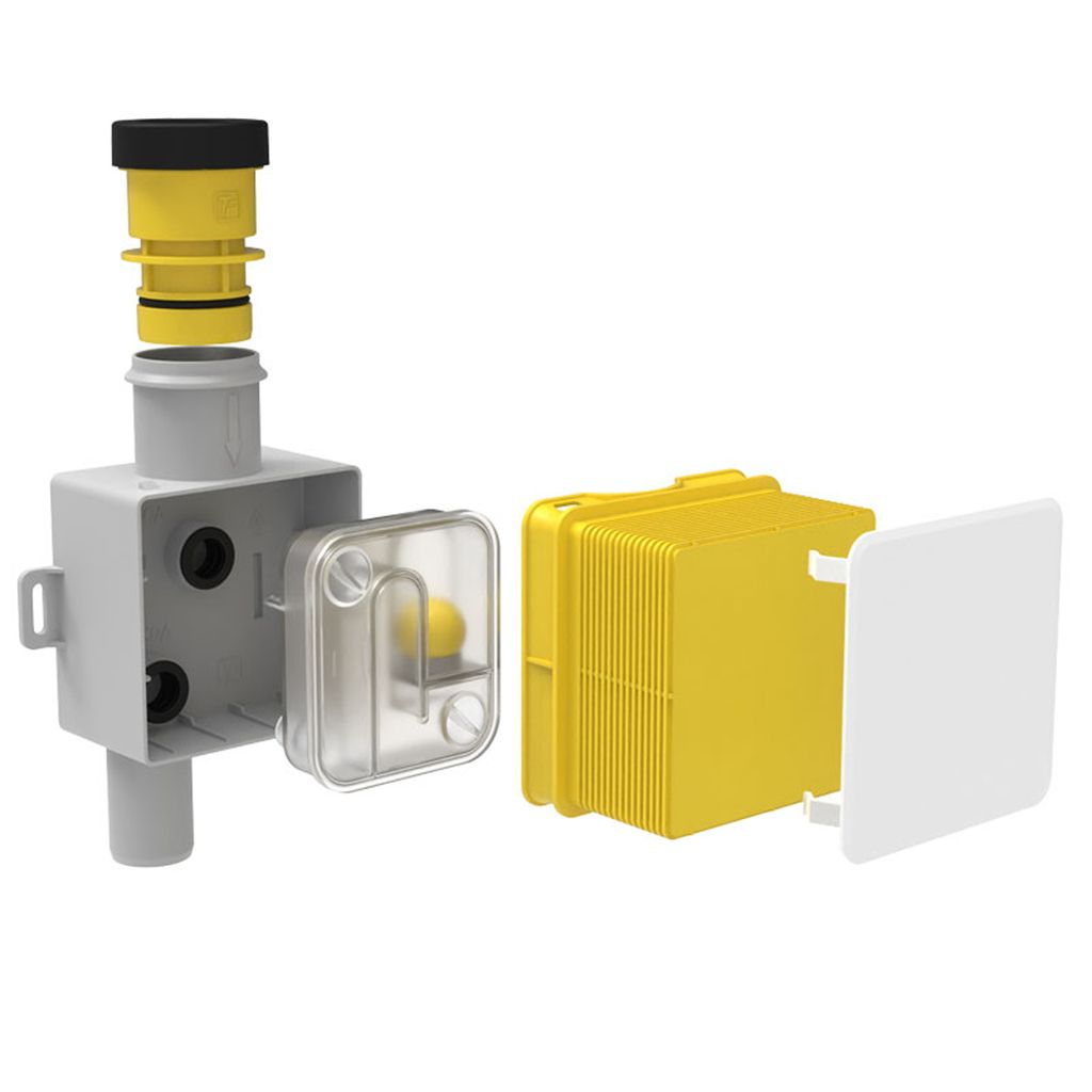 При сливе дренажа от кондиционеров вода проходит через съемную кассету, герметично соединенную с корпусом с помощью эластичных уплотнительных прокладок. Кассета имеет гидрозатвор высотой 50 мм и механическое запахозапирающее устройство в виде шарика, который при высыхании гидрозатвора не пропускает запахи из канализации.