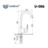 ULGRAN U-006 - классический кухонный смеситель с высоким поворотным изливом. Материал корпуса выполнен из высококачественной латуни, а окрашивание под "искусственный камень" в цвет мойки ULGRAN выполняется на собственном производстве, что позволяет идеально попасть в фирменный цвет ULGRAN. В качестве керамического картриджа используется известный бренд Wanhai диаметром 40 мм с высокой пропускной способностью в 500 тысяч циклов "открывания-закрывания". На подвижные части картриджа Wanhai нанесена специальная невымываемая силиконовая смазка, а керамические пластины изготовлены из 96% оксида алюминия, что, в сочетании с высоким качеством шлифовки обеспечивает долговечность, надежность, плавность хода рукоятки. Смеситель оборудован съемным пластиковым аэратором для экономии воды и поворотным изливом на 360 градусов. В комплектацию входят: керамический картридж Wanhai, гибкая подводка 450 мм, комплект крепежных элементов, технический паспорт и гарантийный талон. Заводская гарантия составляет 3 года на материал корпуса, 1 год на комплектующие к смесителю и 1 год на материал покрытия.