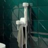 Встраиваемый смеситель с гигиеническим душем со стильным белым матовым покрытием подойдет для современной туалетной комнаты, привнесет в нее комфорт и эстетику. Крючок на корпусе смесителя позволит разместить полотенце – оно будет всегда под рукой. Держатель для лейки и крючок для полотенца при необходимости можно поменять местами. Гигиеническая лейка и гладкий душевой шланг длиной 1,2 метра поставляются в комплекте.