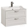 Подвесная тумба под раковину Леон 65 от бренда AQUATON в благородной отделке белый дуб создана для любителей классического дизайна, но при этом предпочитающих современные материалы. Корпус и фасады выполнены из высококачественной МДФ, покрытой матовой пленкой. В тумбе установлены два ящика с системой плавного выдвижения и доводчиками. Классическую эстетику модели подчеркивают изящные ручки в отделке бронза от европейского производителя.