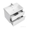 Корпус тумбы Оливия изготовлен из влагостойкой ламинированной ДСП в белой матовой покраске, а фасады ящиков в пленке от европейского производителя надежно защитят мебель от воздействия влаги в условиях ванной комнаты. Ящики установлены на направляющие полного выдвижения с доводчиками, что обеспечит легкий доступ ко всем предметам, которые хранятся в ящиках. Корпус и внутренние детали ящиков выполнены в единой цветовой гамме. Необычный вырез на фасадах создает имитацию ручки: оригинальный дизайн тумбы без выступающих деталей и комфортное использование. Размер ручки 18 см. К тумбе подойдет удобная современная керамическая раковина Адриана от бренда Santek.