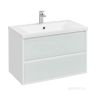 Тумба Римини 80 от бренда AQUATON - лаконичное решение тех, кто предпочитает строгий дизайн в безупречном исполнении. Поверхность фасадов удивляет элегантностью и безупречно ровной поверхностью за счет стеклянных панелей, установленных на фасадах, и отсутствия лицевой фурнитуры. Корпус, изготовленный из влагостойкой ЛДСП, и фасады из МДФ, окрашены в белый цвет полиэфирной краской ультрафиолетового отверждения с высокой степенью глянца. Тумба имеет два ящика, снабженные системой плавного закрывания. Нижний предназначен для больших предметов, а верхний, имеющий удобную систему организации пространства, - для мелких аксессуаров.