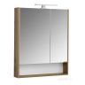 Внутреннее пространство зеркального шкафа разделено на ассиметричные секции, которые позволят хранить косметические средства различного объема и высоты. По желанию можно дополнительно приобрести светильник.