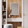 Прямоугольное зеркало с пескоструйной окантовкой: изящная рамка из матового стекла, подчеркивающая стиль и добавляющая утонченности в интерьер.